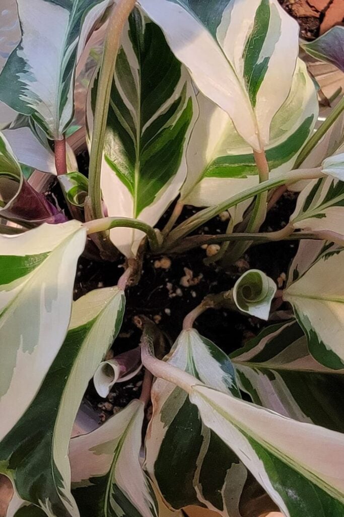 Since this plant is variegated, it has a lower capacity for photosynthesis than “non-variegated” Calatheas. In other words, it needs more light than a typical Calathea.